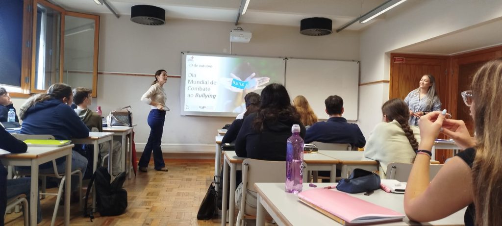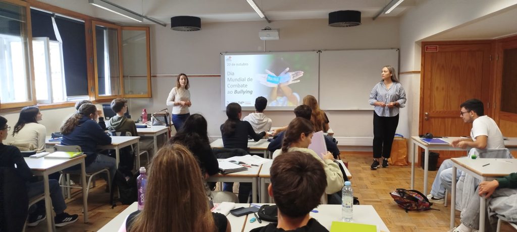 Nos dias 20 e 21 de outubro de 2025, os alunos do 10.º ano e do ensino profissional do AEJM participaram numa ação de sensibilização dedicada ao respeito, empatia e convivência positiva. Esta iniciativa teve como objetivo promover uma escola mais segura, inclusiva e livre de comportamentos de bullying, reforçando a importância das relações saudáveis no contexto escolar.