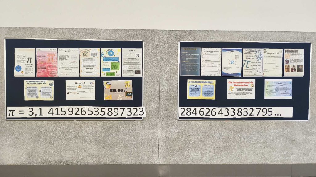 Para comemorar o Dia Internacional da Matemática, ou, Dia do Pi, que se celebra a 14 de março, os alunos do 8.º ano realizaram cartazes que se encontram expostos na escola e assistiram a uma conferência sobre “O papel da matemática no desenvolvimento da sociedade contemporânea” apresentada pelo professor Jaime Carvalho e Silva, promovida pela APM – Associação de Professores de Matemática.