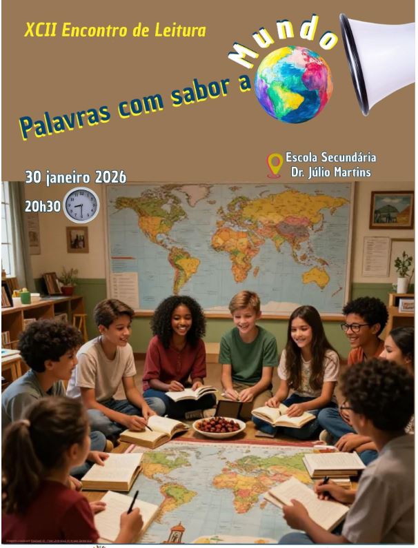 Esta sexta‑feira, 30 de janeiro, às 20h30, a Escola Secundária Dr. Júlio Martins recebe o XCII Encontro de Leitura, desta vez com o tema Palavras com sabor a Mundo.