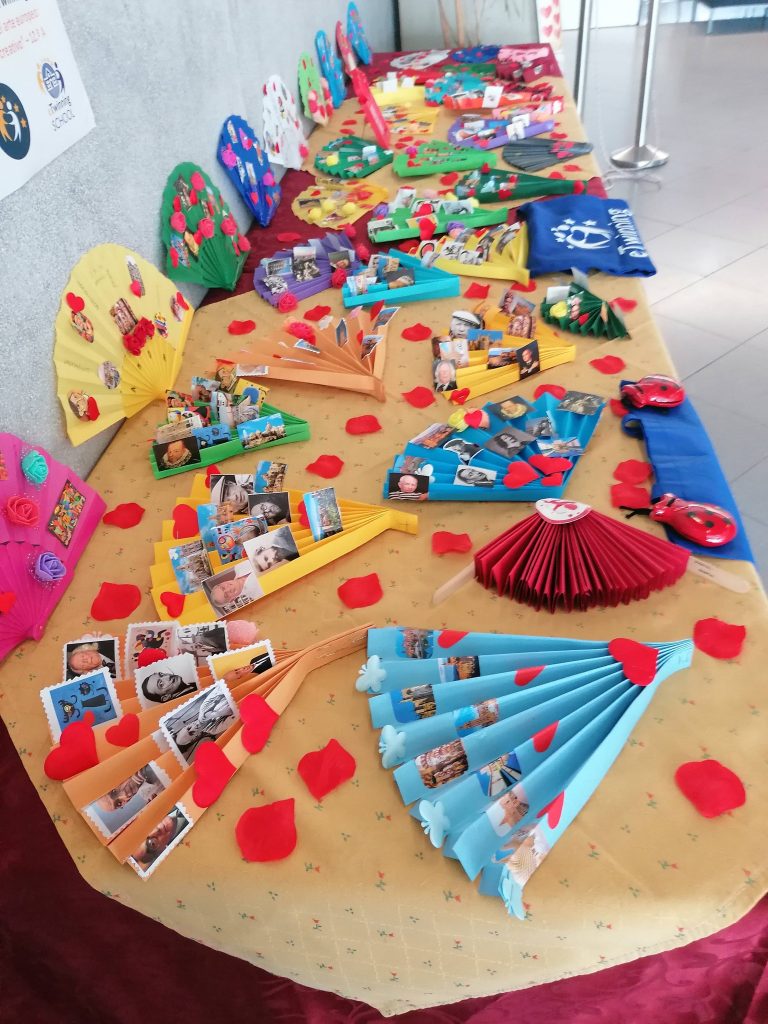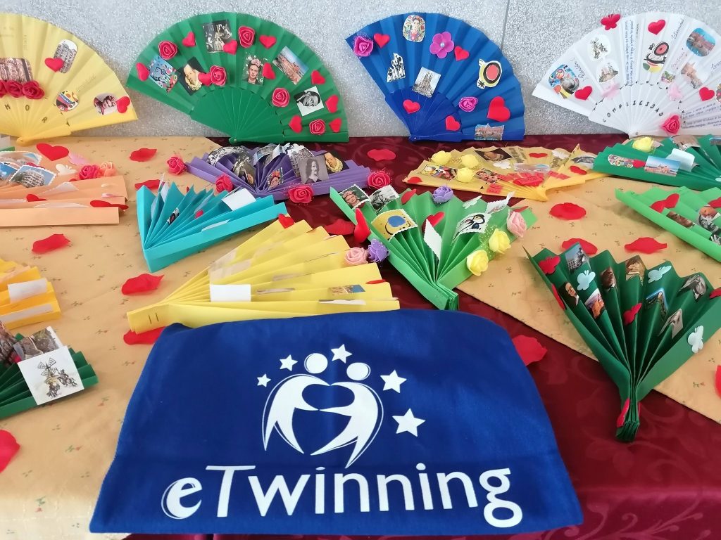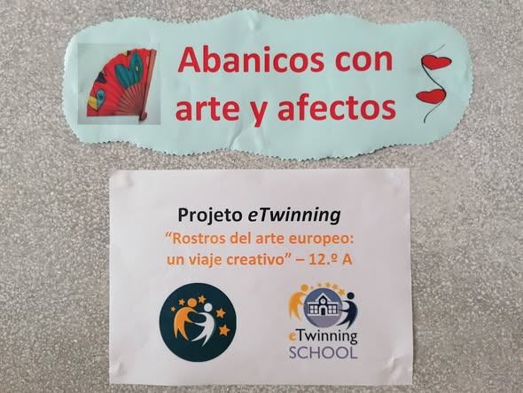O átrio da Escola sede transformou‑se num vibrante espaço de cor, criatividade e emoção com a exposição “Abanicos con arte y afectos”, integrada no projeto eTwinning Rostros del arte europeo: un viaje creativo e na celebração do Dia dos Afetos.